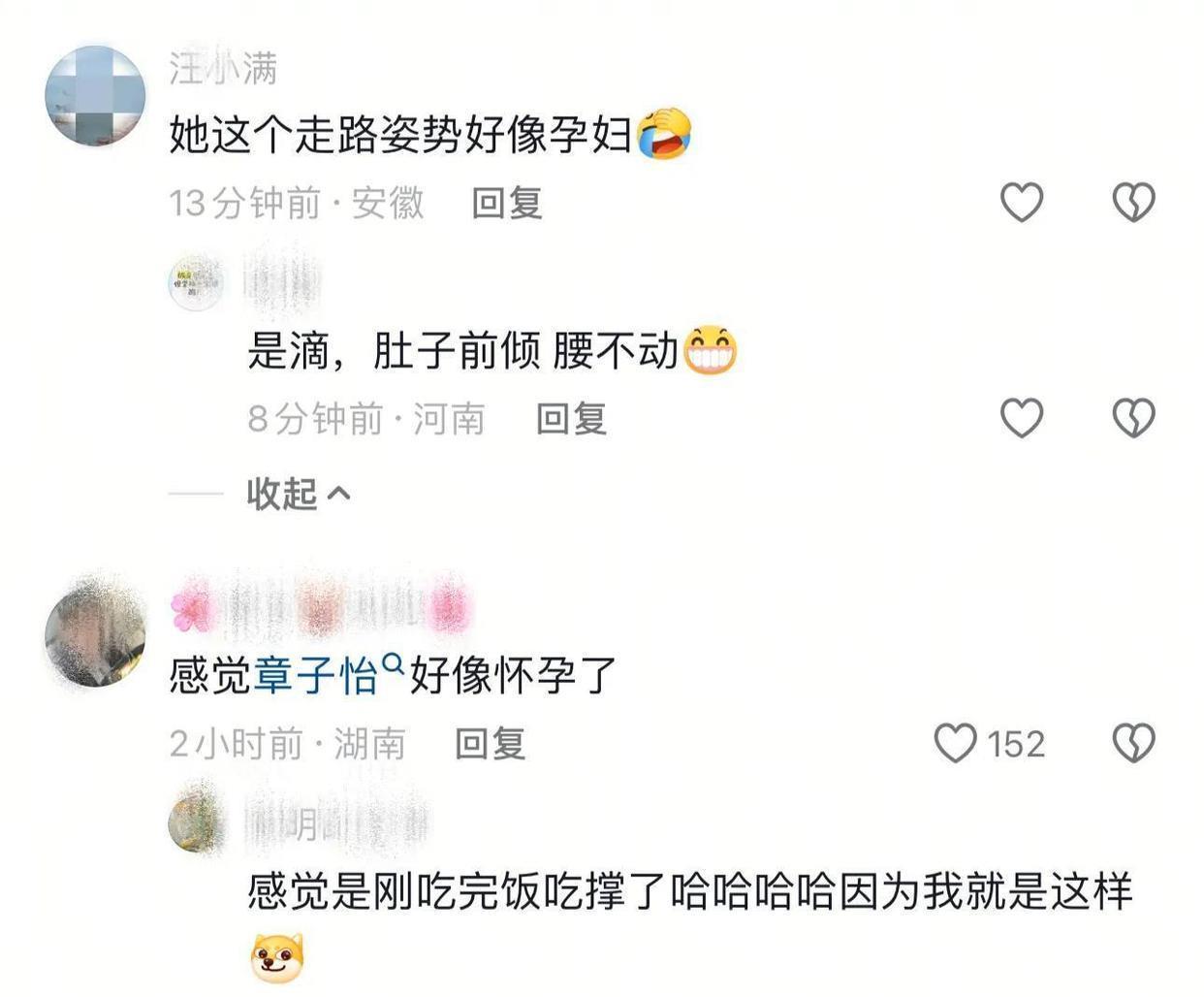 除了这些,大家还特别关心章子怡的走路姿势。有网友提到她走路时肚子前挺,但腰没怎么动,怎么看怎么像个孕妇似的。