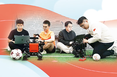 终场哨响,冠军诞生!清华大学未来智能机器人兴趣团队的实验室里爆发出欢呼声,同学们相互击掌、拥抱。这个社团目前有大型人形足球机器人团队火神队、小型人形足球机器人团队TH—MOS队和家庭服务机器人团队Tinker队三支主要团队。这场胜利,属于每一个在社团里拼搏、成长的年轻人。